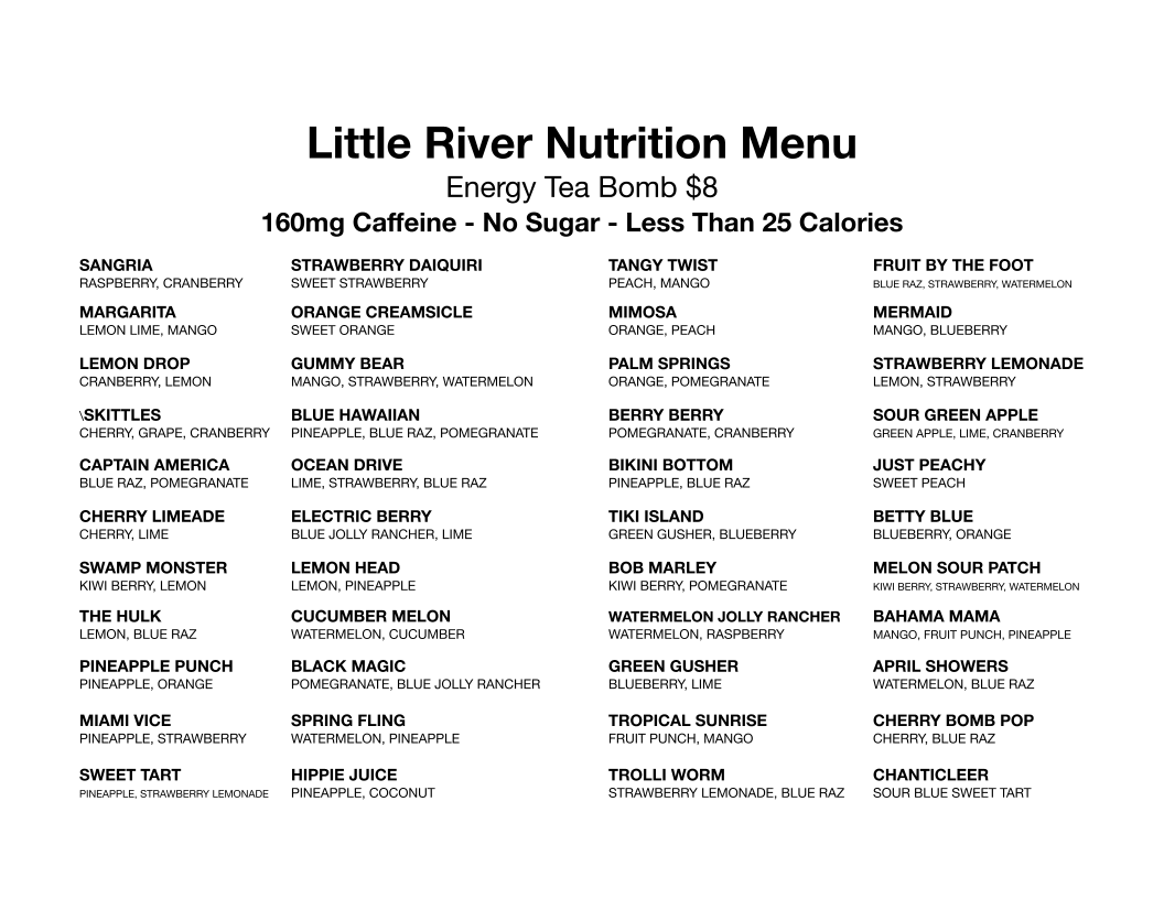 Welcome to Little River Nutrition, a charming café located at 1763 US-17 in Little River, SC. This cozy spot offers a delightful menu that caters to health-conscious diners and beverage enthusiasts alike. With their signature Aloe Spritzer priced at $8.32, you can refresh your day with a blend of unique flavors.